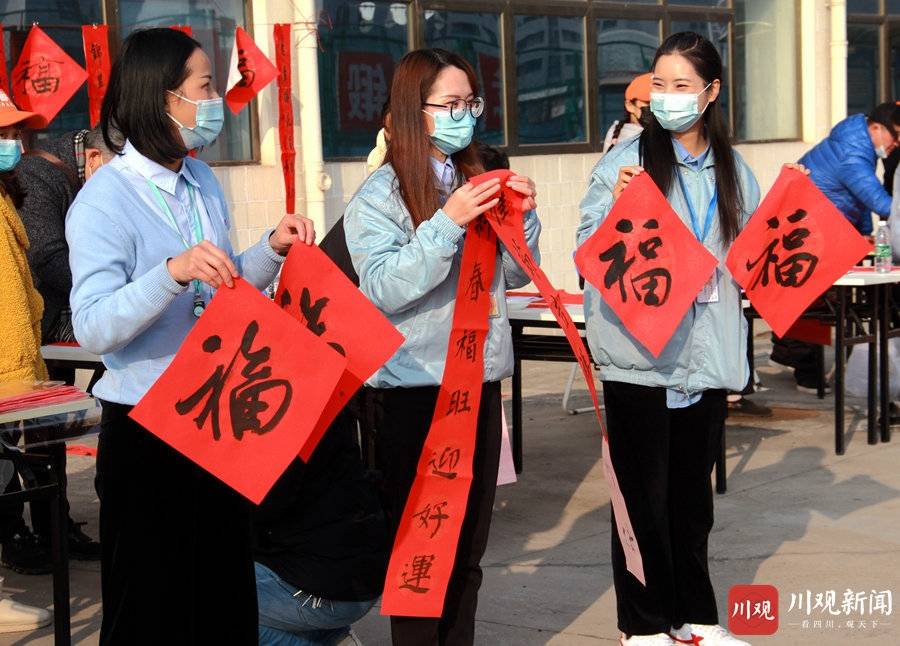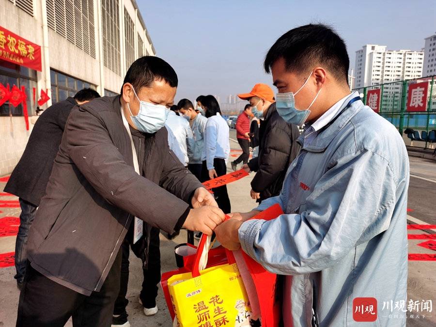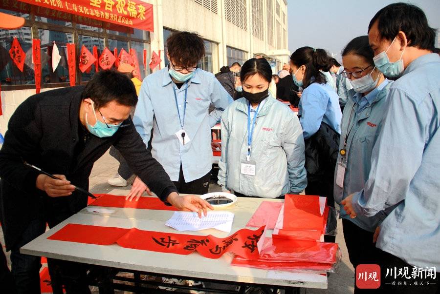 连日来,仁寿县组织本土书法家到企业为就地过年员工现场书写春联、福字,向部分省外员工赠送当地文创产品、特产等礼包,并免费邮寄到员工家中,让就地过年员工提前感受到了浓浓的年味。