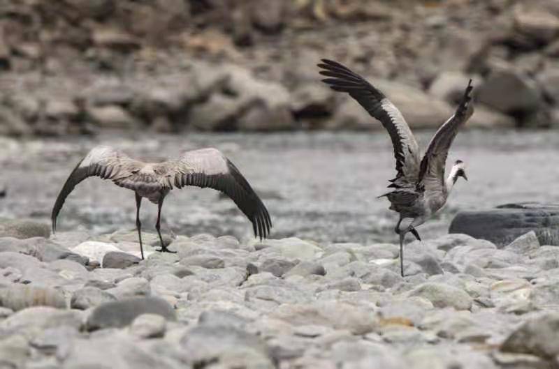 冕宁县位于安宁河上游,安宁河流域属于中国鸟类六条迁徙通道之一,大批候鸟会途经这里或者选择这里过冬,灰鹤在越冬地集群活动时,主要以家庭为单位到农田觅食麦苗或残留的作物种子。