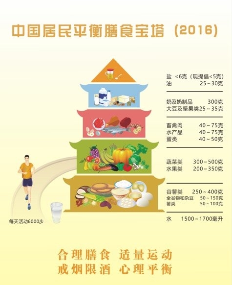 “中国居民平衡膳食宝塔”简称“平衡膳食宝塔”,包含人们每天应吃的主要食物种类。宝塔各层位置和面积不同,这在一定程度上反映出各类食物在膳食中的地位和应占的比重。