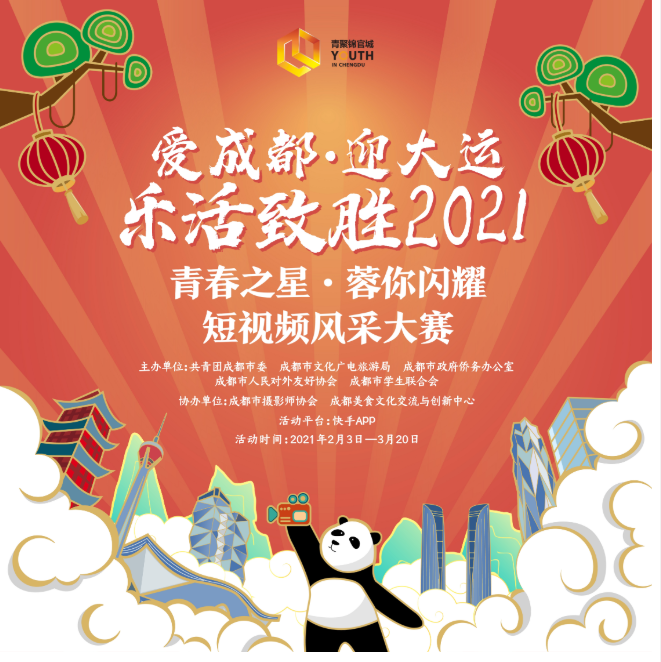 为进一步加强青年节日氛围营造,丰富假期生活,共青团成都市委发起系列线上活动。2月3日,“爱成都·迎大运”——“乐活致胜2021·我在成都过年”系列活动全面拉开帷幕。