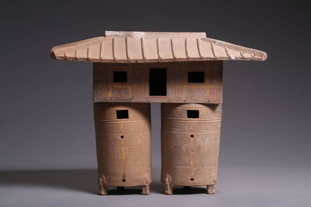 灰陶彩绘双联仓