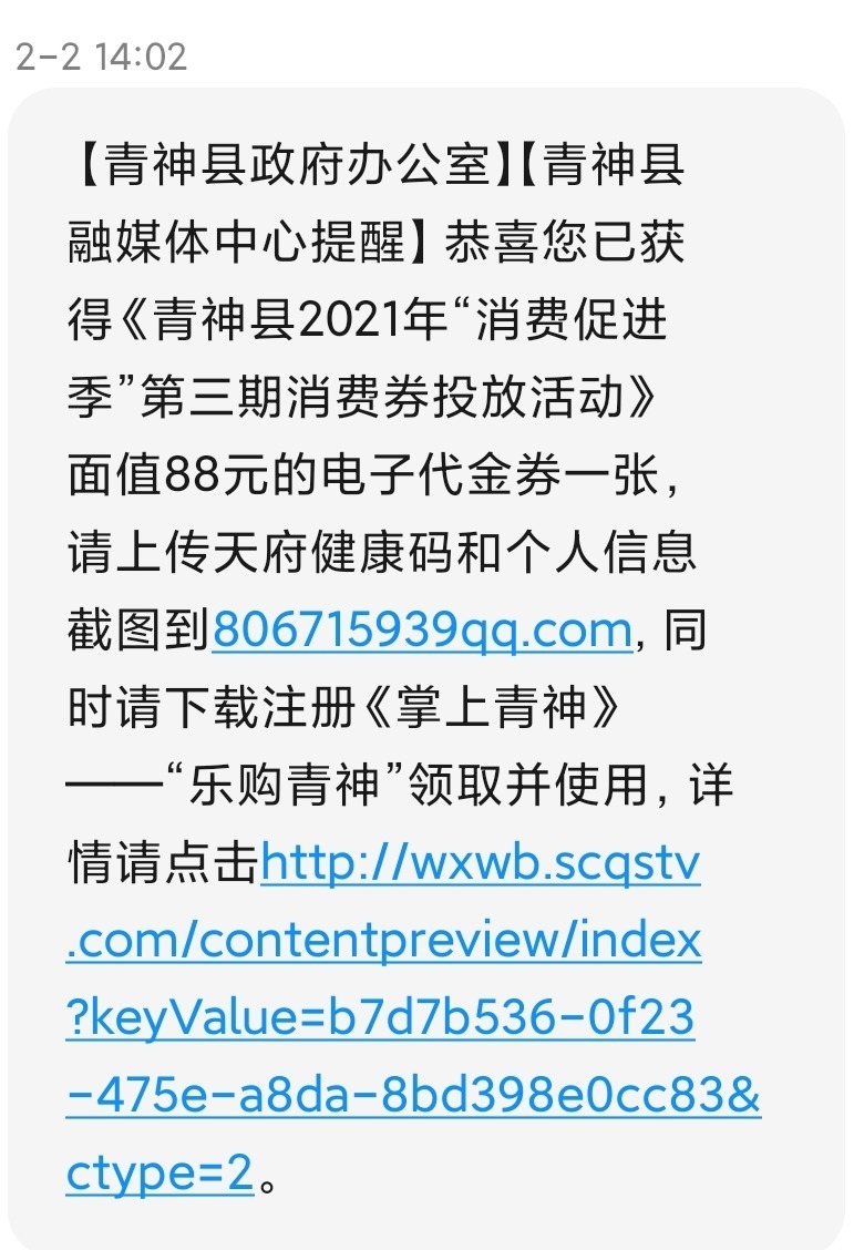 据该县商务局相关负责人张无为介绍,春节临近,现在既是疫情防控的关键时期,也是消费购物的高峰时段,这次推出发放消费券的活动,助力推广“天府健康通”健康码,充分调动了青神市民和商家两个群体的积极性。凡注册“天府健康通”健康码的市民和注册场所码的商家,均可参与活动,享受消费促进红利,达到疫情防控和拉动消费的双赢目标。