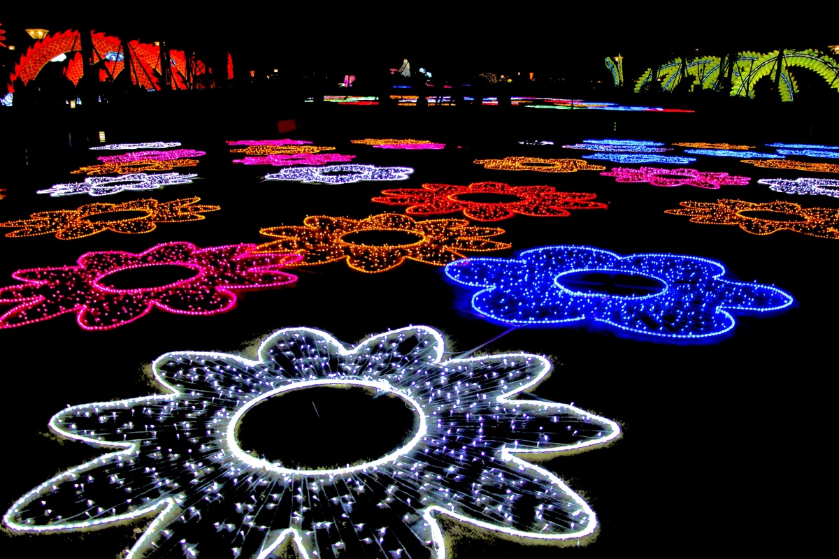 2月3日晚,湿地公园内,霓虹斑斓,不少市民在这里驻足观灯,拍照打卡。