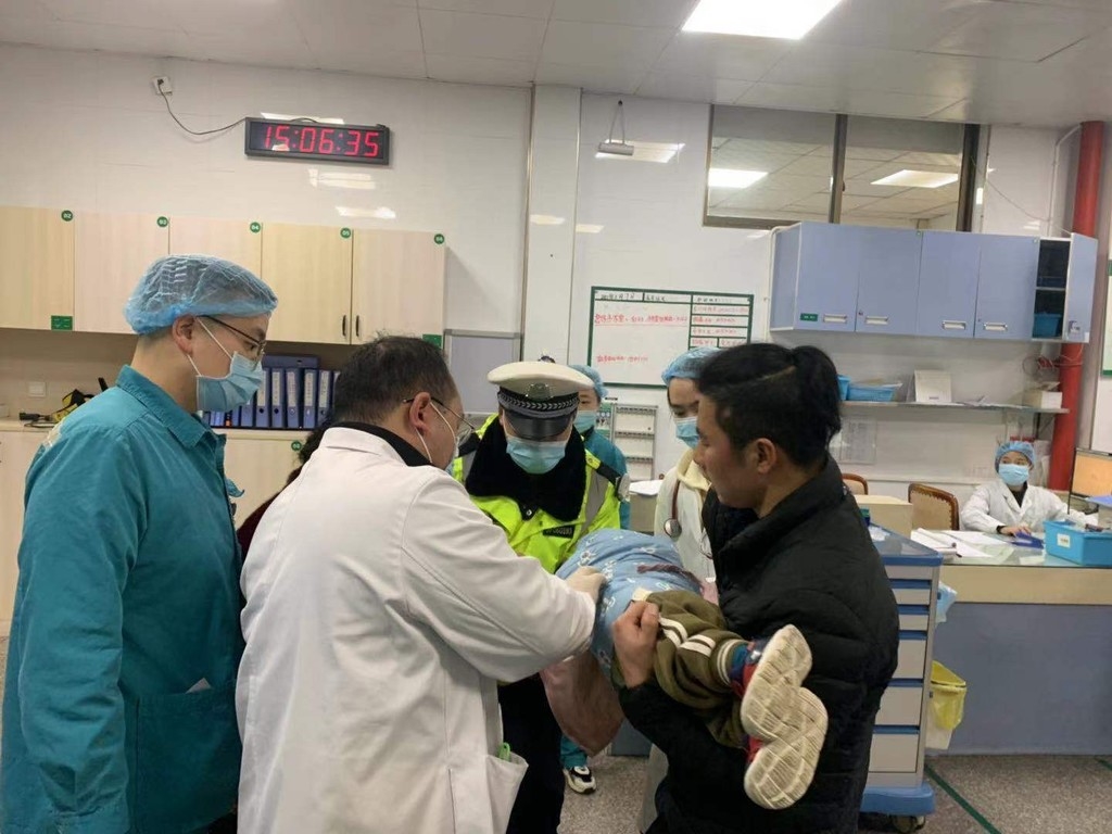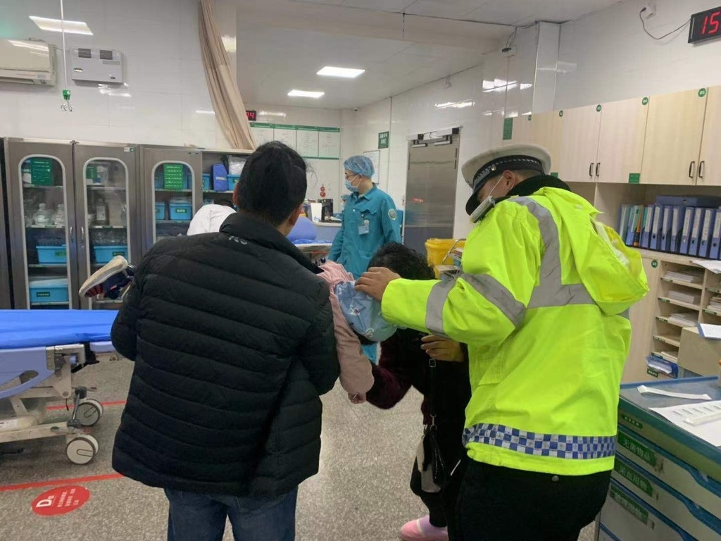 到达医院后,交警大队民警一路护送小孩到急诊科抢救,在其得到妥善救治后,民警才驾驶警车离去。