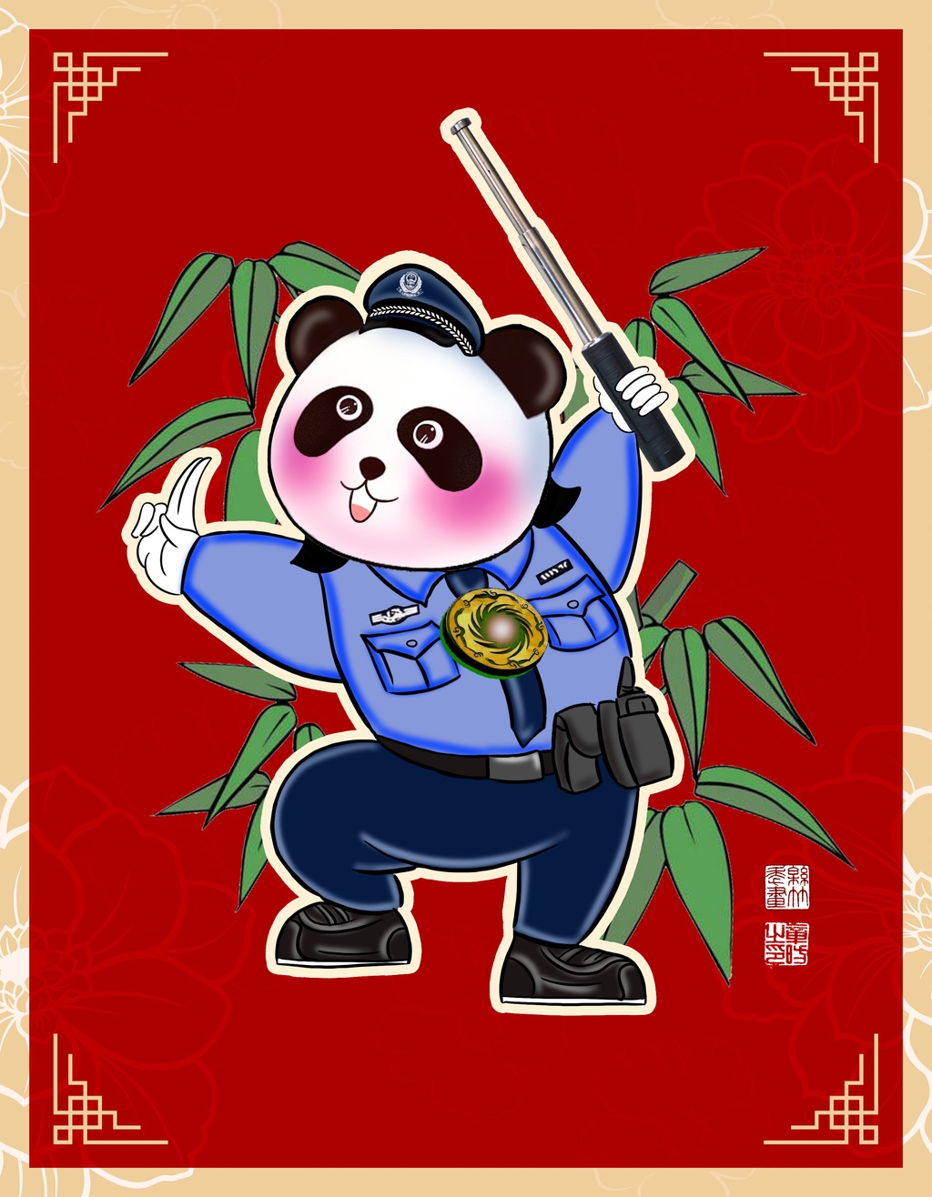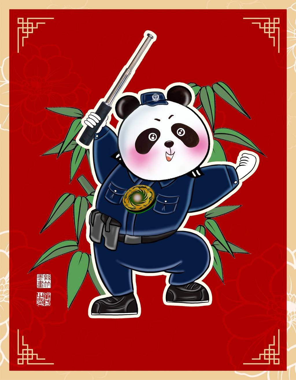 警察年画展区展出的是近年来四川公安机关特别是德阳公安机关坚持文化的传承与创新,年画非遗传承人与警察文创人才共同创意创作的系列警察年画。走进展厅,正面“对党忠诚、服务人民、执法公正、纪律严明”四幅践行训词年画格外引人注目,憨态可掬的大熊猫警察门神、威风凛凛的三星堆战警守护着平安四川,从新中国成立的《保卫人民主权》、耳熟能详的《一分钱的故事》到走进新时代的《平安中国》,年画“绘”出了人民公安71年波澜壮阔的发展史。