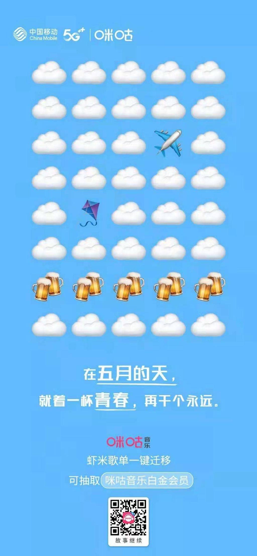 优势特点:咪咕音乐针对虾米有五月天歌曲的这一优势,同时有五月天、周杰伦音乐免费版权的咪咕音乐也做出了相关海报。