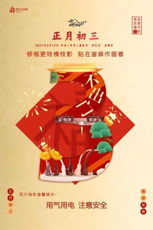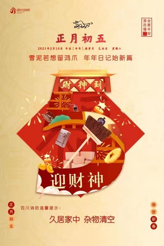 临近春节,正值用火、用电、用油、用气高峰,各种商贸和庆祝活动多,人流、物流聚集,历来是火灾多发高发期。2月5日,四川省消防救援总队发布春节期间八条防火提示: