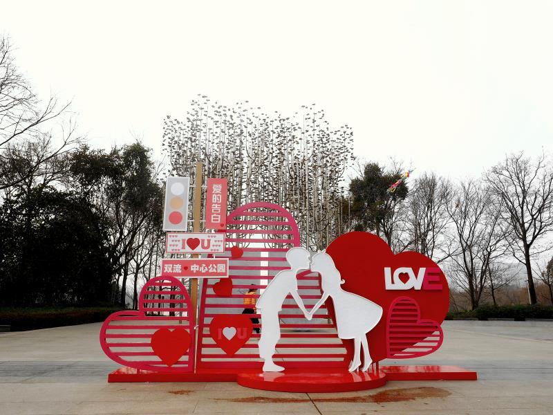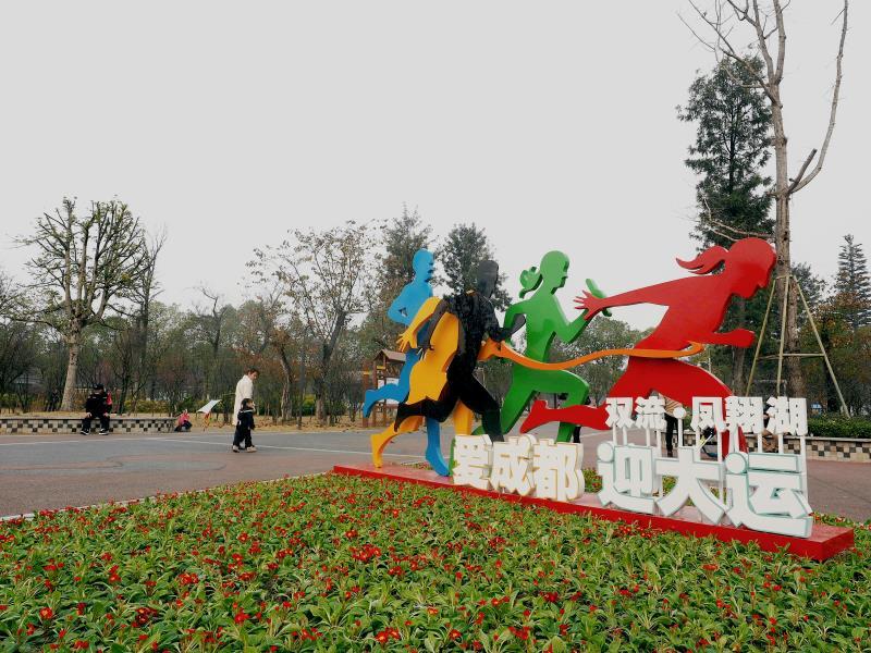 棠湖公园围绕“传统新年,海棠朵朵”的主题,设置了3处新年美陈,正门入口处、园区内道路旁及廊桥古建均装点有各色油纸伞、自贡灯会非遗手工匠人特别打造的火红定制灯笼。凤翔湖公园设置了活力多彩的“爱成都·迎大运”主题造型、蓬勃向上的“牛气冲天”造型。中心公园设置了温馨浪漫的“爱的告白”主题造型。双流地标棠湖公园熏风塔也亮灯迎春,与中心公园的流星雨灯光、白河公园主入口的灯光交相辉映,为留在双流过年的人们亮起一盏“此心安处是吾乡”的温暖明灯。