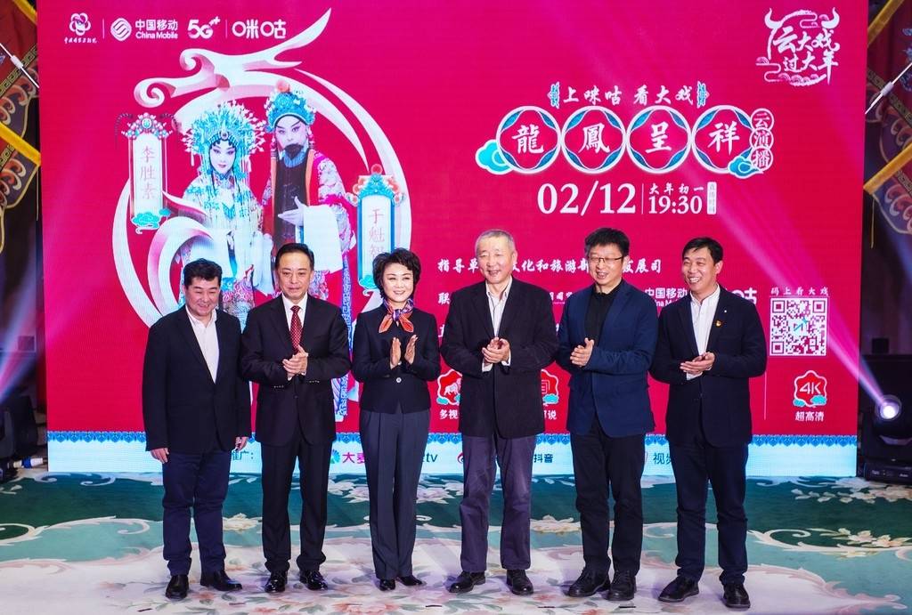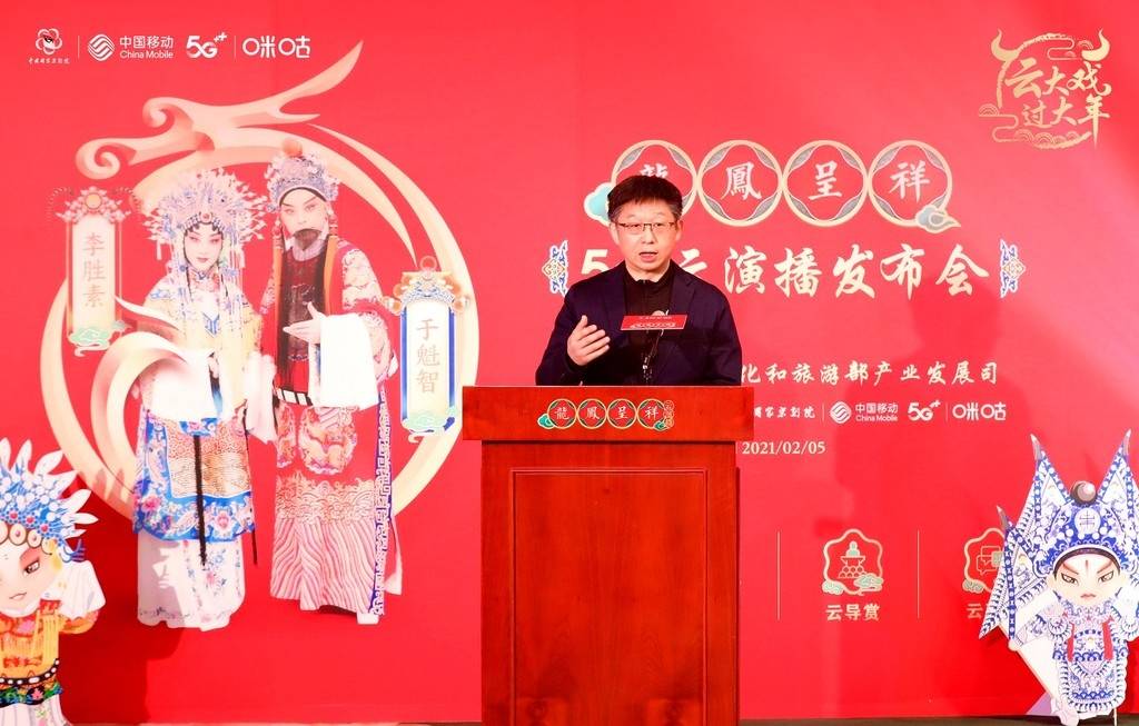 文化和旅游部产业发展司司长高政、国家京剧院党委书记、副院长张亚峰、院长王勇、著名京剧表演艺术家于魁智、著名京剧表演艺术家、国家京剧院一团团长李胜素、中国移动咪咕公司总经理刘昕等出席。为响应“就地过年”号召,从正月初一至十五,国家京剧院与咪咕将以“云大戏,过大年”为主题,以5G+4K云演播的全新模式联合推出经典大戏《龙凤呈祥》,让子女陪父母“云观戏”,弘扬中华优良传统,共同打造5G时代云演播行业新标杆。