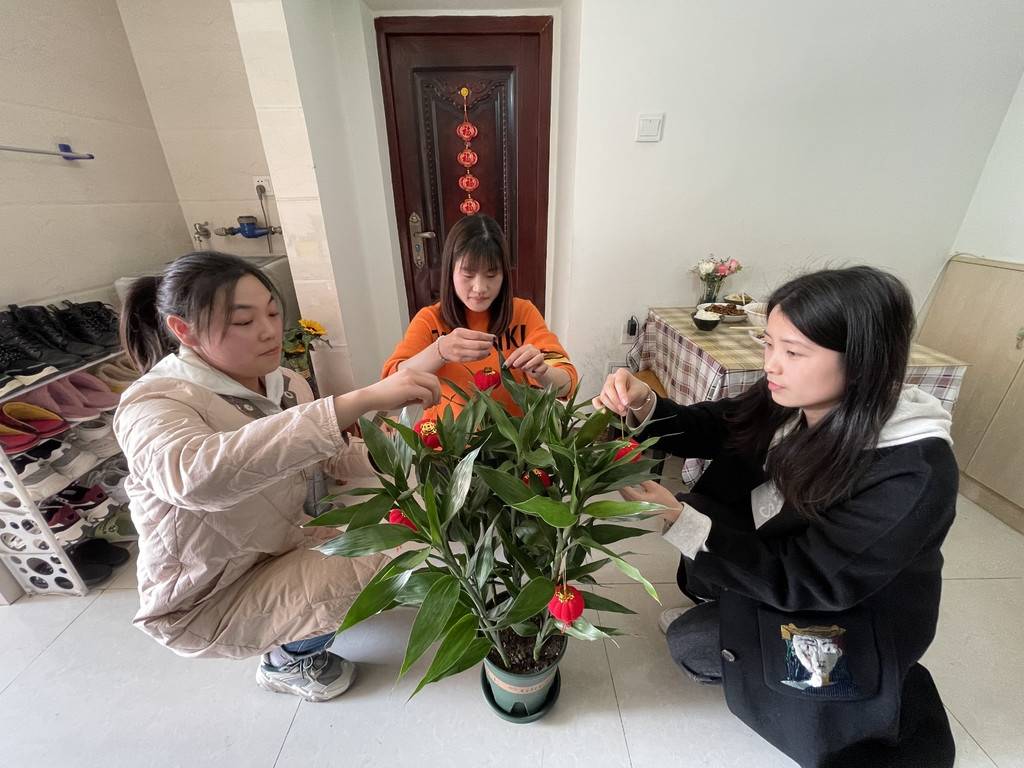 原来,赵月、王永敏、钱梦珍是天津铁道职业学院的同班同学,2014年一起到了中国铁路成都局成都车站上班,2018年,三个家在外地的小姐妹共同租下这间房,在成都有了一个“家”。但是,三人分别在资阳北站、成都东站、成都西站上班,岗位、工种不同,上班时间和休息时间各不相同,一个月下来,只有一天时间三人才有“交集”。2月5日,南方小年日,正好三人都休息,因此商量着,提前过了这个“年”。