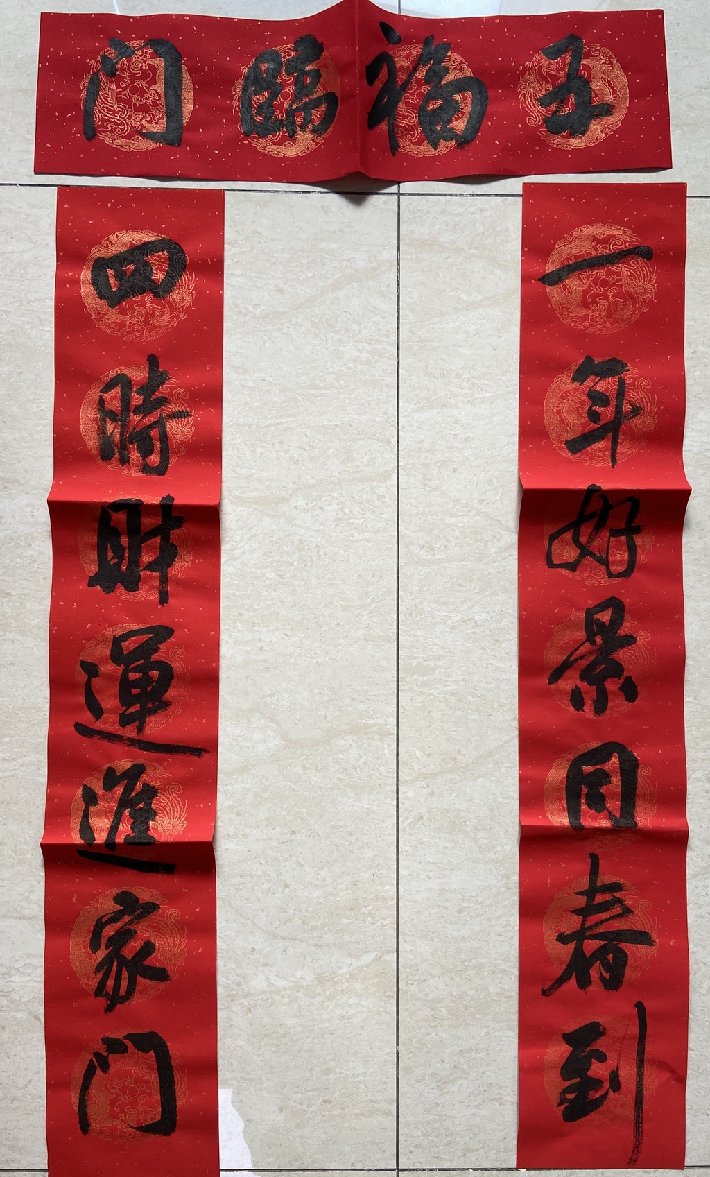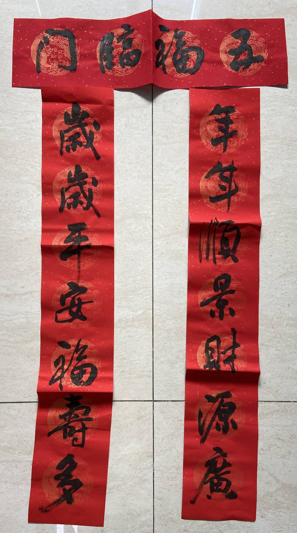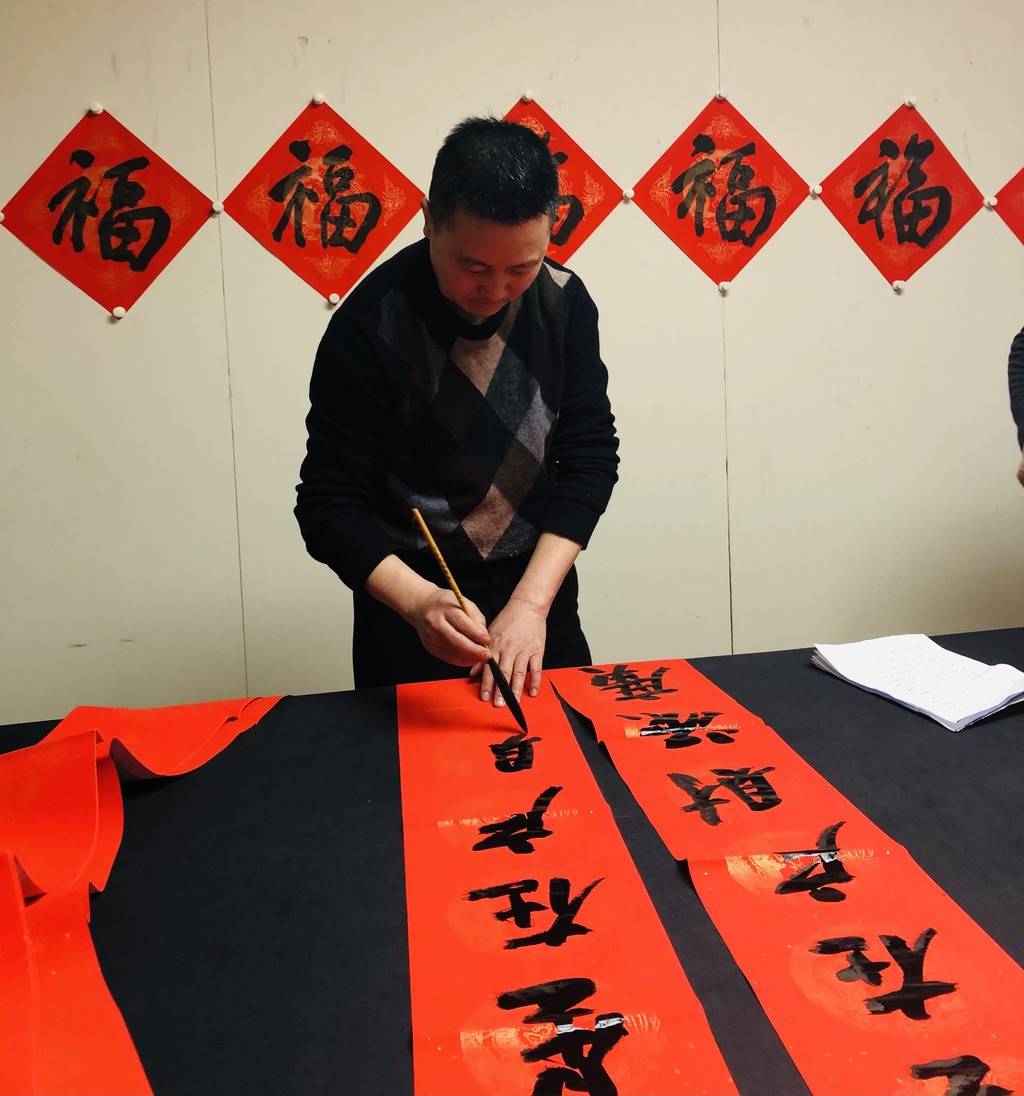 “年年顺景财源广,岁岁平安福寿多”、“一年好景同春到,四时财运进家门”、“张灯结彩迎新春,欢天喜地度佳节”……活动现场,书法家忙着选联句,饱蘸浓墨,提笔挥毫,随着笔锋或扬或抑,将心底的美好祝愿化作一张张寓意吉祥的作品。