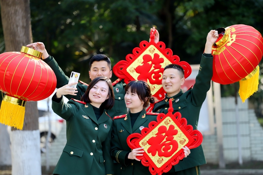 “为了让官兵们热热闹闹过节,我们医院提前购买了春联、灯笼、中国结等节日装饰品,发放到官兵手中,让他们自己动手布置,喜迎春节。”该医院相关负责人介绍,医院官兵来自祖国各个省份,有的甚至离家近千公里,在万家团圆的新春佳节,他们依旧坚守在岗位上,为驻地的繁荣稳定和节日的祥和安宁奉献自己的青春和力量。同时,官兵们也通过录制祝福视频等方式喜迎新春,向身边的战友、远方的亲人拜年。
