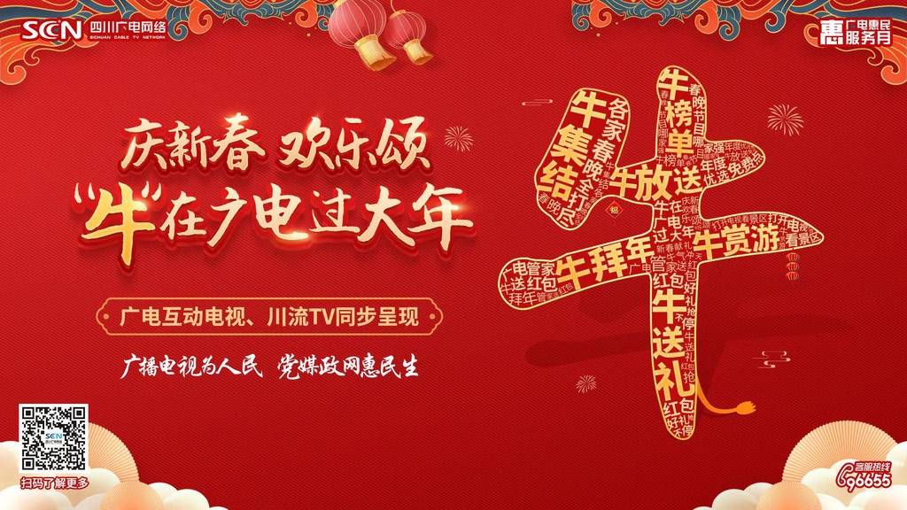 2月8日,记者从四川广电网络获悉,作为全省2021年春节文化惠民系列活动的组成内容,四川广电网络“庆新春欢乐颂 ‘牛’在广电过大年”活动已于2月6日正式开启,并将持续至2月28日。活动期间,开设新春活动专区,提供海量内容,开展形式丰富的互动活动,最大程度满足人民群众“留”川过年的文娱收视需求,为全川群众送上新春“贺礼”。