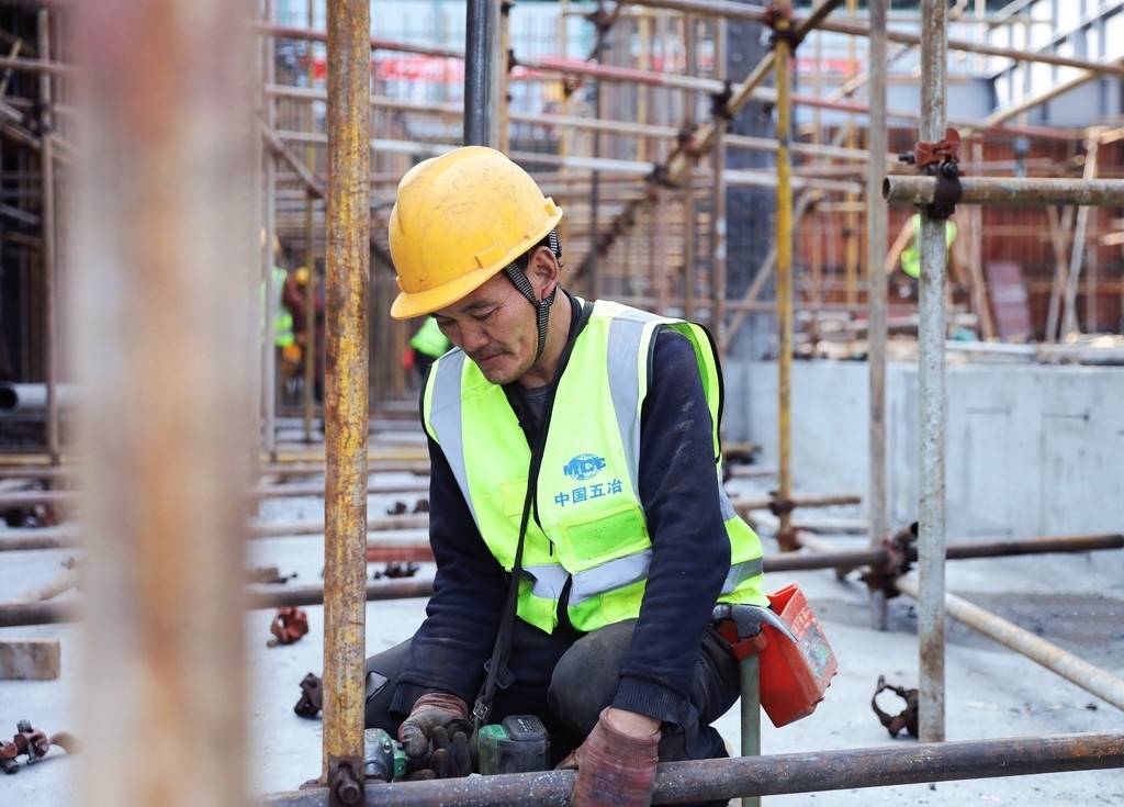 “他们忙过节,咱们过节忙。”今年已经53岁的陈天清从事架子工接近20年,自两个月前来到项目部,放下行李、走进施工现场工作的他没有休息过一天。他告诉记者,“项目工期紧、任务重,我们工人都知道。公司领导来到工地给我们工人拜年,让咱们这些外来的劳务工人也能在节日期间感受到家的温暖。”