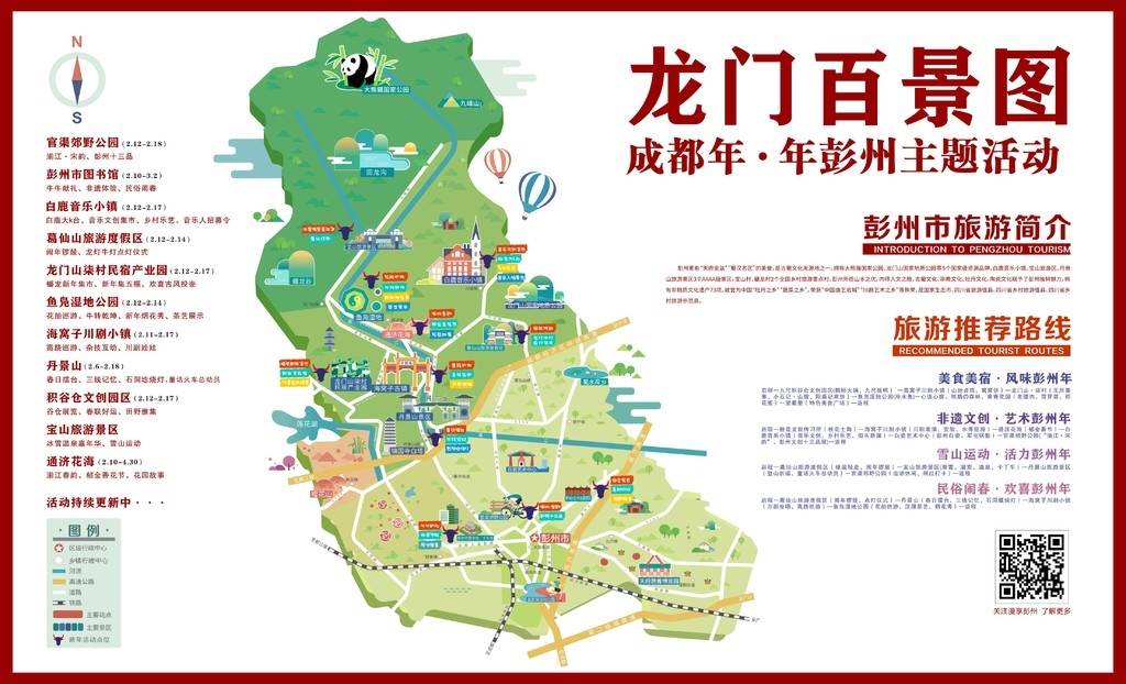 春节期间,彭州还将举办“龙门春晓·彭州年”非遗文创展示、“建党百年·百姓百展”新春特辑、“成都年·年彭州”摄影展、“湔江·宋韵”传统文化演示周、通济花海·郁金香节、鹿鸣天籁·白鹿新春嘉年华、九陇三线记忆展、“在彭州过年 到隆丰寻味”、川剧坐唱、舞龙迎春、民俗巡演、白鹿新年音乐快闪等丰富多彩的年味活动,“总计超过100项。有些已经启动,有些即将上线。”彭州市文体旅局相关负责人表示,“希望留蓉留彭过年的市民能度过一个喜庆祥和、趣味欢乐的新春佳节。”