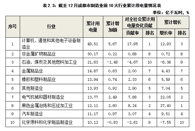 2020年全国GDP前十强城市分别是:上海、北京、深圳、广州、重庆、苏州、成都、杭州、武汉、南京。从用电量看,成都市用电量在GDP前十强城市中排名第8,用电增速排名第一。