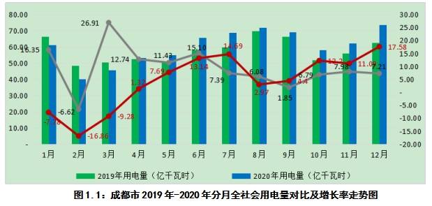 2月8日,国网成都供电公司披露2020年成都市全社会用电量数据。2020年,成都市累计全社会用电量725.43亿千瓦时,占全省用电量约1/4,同比增长4.55%;增速在2020年全国GDP前十强城市中排名第一。