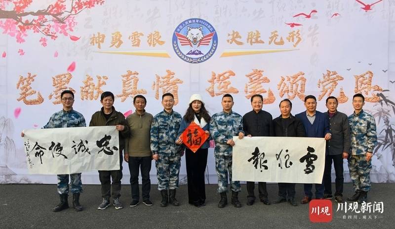 2月7日,西部战区空军某团和驻地美术馆、文化馆、图书馆共同举办了“笔墨献真情·挥毫颂党恩”书画进军营活动。6名书画家走进军营,挥毫泼墨,现场书写春联、福字,为官兵们送上年味十足的新春礼物。