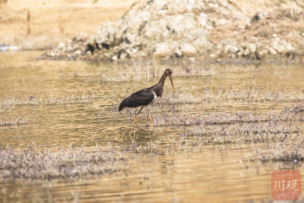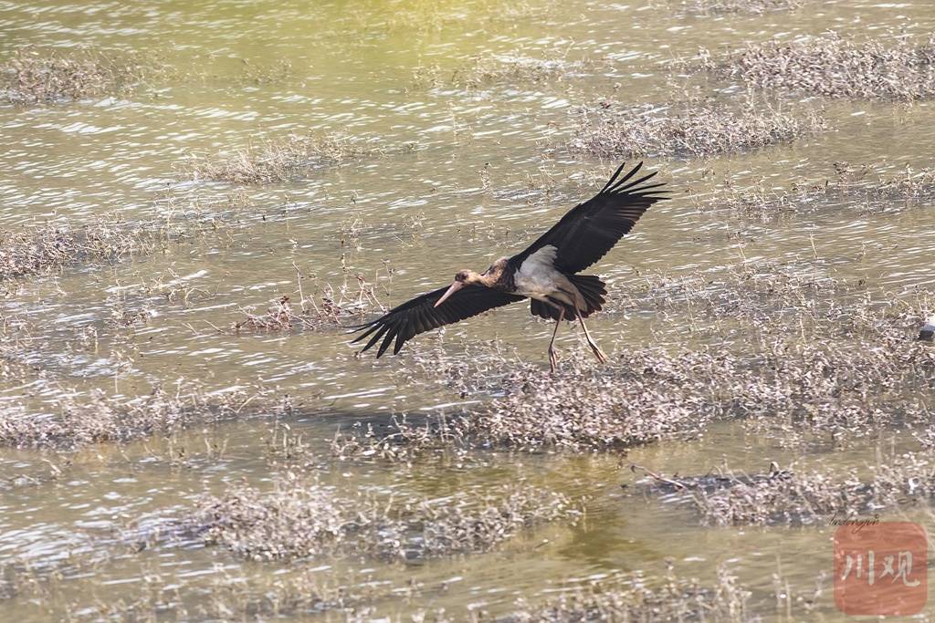 红嘴巴、大长腿,体态优美,体色鲜明,有着“鸟中大熊猫”之称的国家一级保护动物黑鹳日前现身攀枝花市仁和区。2月9日,经攀枝花市林业局相关专家证实,这在攀枝花尚属首次。
