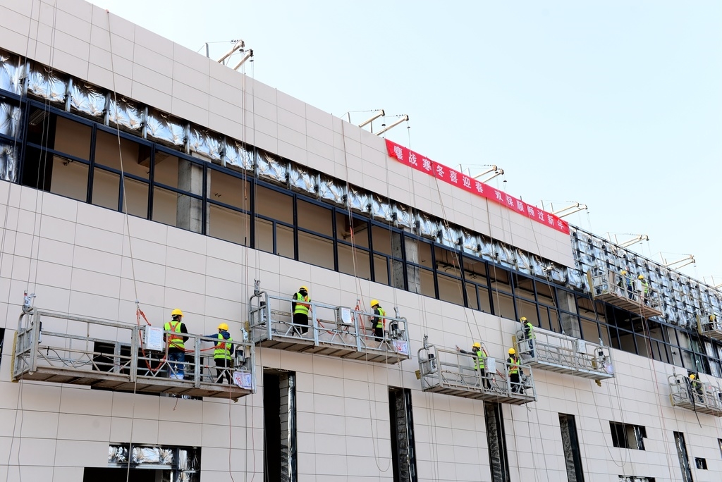 大红灯笼高高挂,新年新衣新气象。走进川省重点工程中科院光电所科学城园区项目工地,工人们正在紧锣密鼓地进行幕墙施工,一排排崭新的陶土板为项目E2精密光学实验楼穿上了明亮的新衣,“春节保安全保稳定”大比武活动正在有序展开。“保障坚守在岗的一线建设者欢欢喜喜过新年的同时冲刺工程建设,确保3月顺利完成项目E2精密光学实验楼3.4万平方米悬挂幕墙施工。”该项目工会负责人介绍。