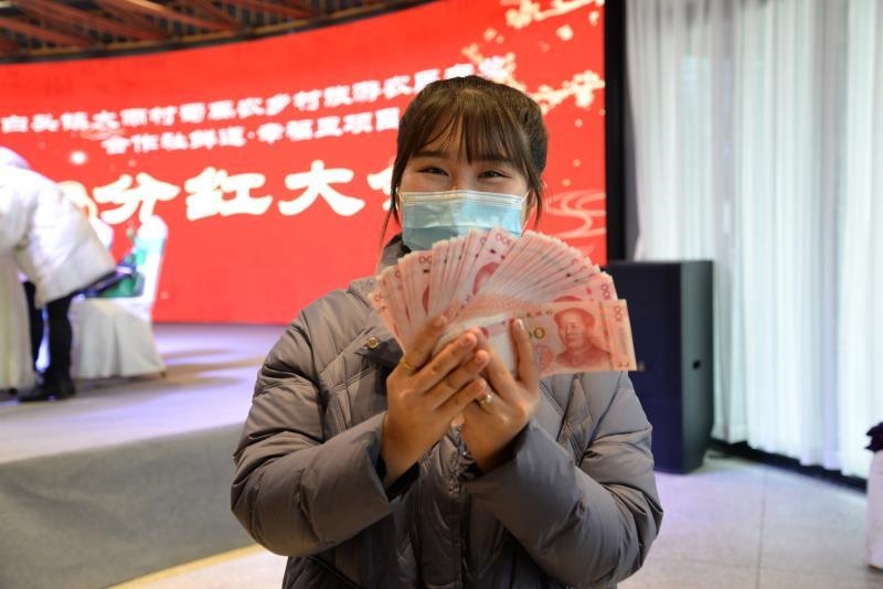 当初,村里共有110个股东入股106万元。经过仅8个月的发展,项目产生的收益,按照分红机制为股东发放红利30万元。