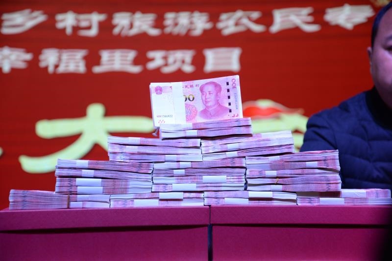 “高力峰2万6,王梦蝶7800元,李树清1300元,易小红520元……”2月9日,崇州市白头镇大雨村举行集体经济分红大会,村党总支书记冯进每念到一人,村民便有序签字领钱。