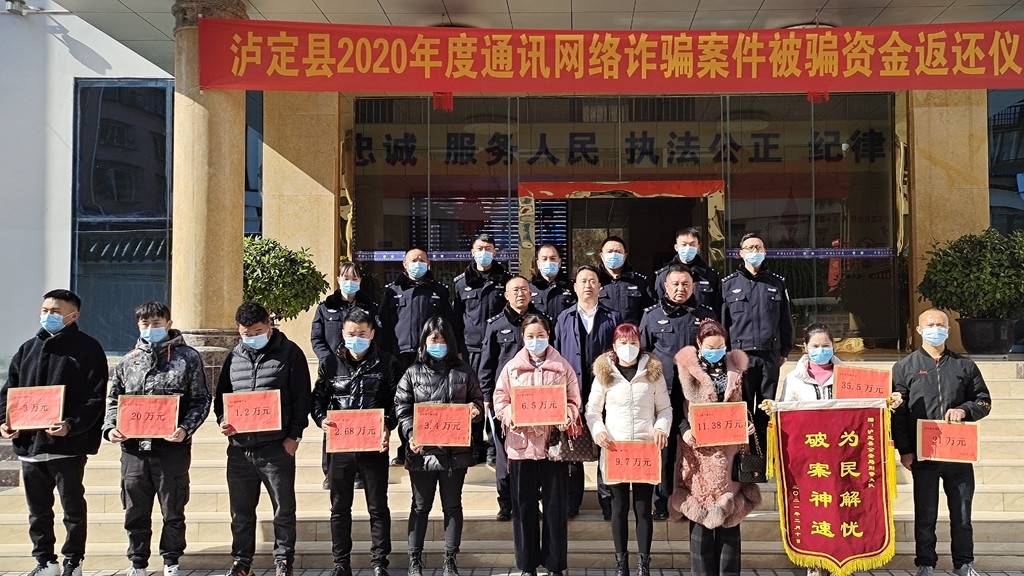 据介绍,2020年泸定县因通讯网络诈骗案件损失资金合计547万余元,累计冻结99个涉案账户内资金590万余元。2020年12月,泸定县公安局派出专班民警赶赴全国15个省40余市县,历时28天,成功办理已到期被骗资金返还业务36笔,返还被骗资金合计117万余元。”