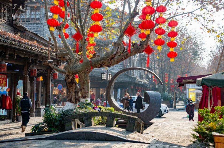 春节将至,年味儿渐浓。2月10日,成都都江堰的主次干道、景区、古城等公共场所都已挂起了大红灯笼,处处透出喜庆祥和的节日气氛。