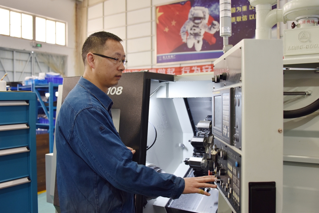 零部件研磨的精度要求也极高:不及头发丝1/16的微米级尺寸公差、能照出人影的表面粗糙度……已从事研磨工作33年的李坚,从研磨膏的调配、研磨套的尺寸设计入手,采用台阶式研磨套,对台阶孔进行研磨,满足了设计要求。
