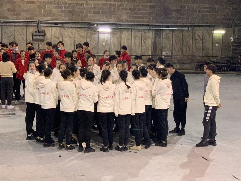因为疫情的影响,所有参与春晚演出的团队均为全封闭排练,排练厅、酒店两点一线的生活成为四川师范大学舞蹈学院队伍近两个月来的常态,他们每天从早晨8点左右开工,一直彩排到深夜,甚至有几次一直到凌晨6:50才结束,同学们回酒店吃了早饭、简单休息3个小时,12点又再次走进排练厅。