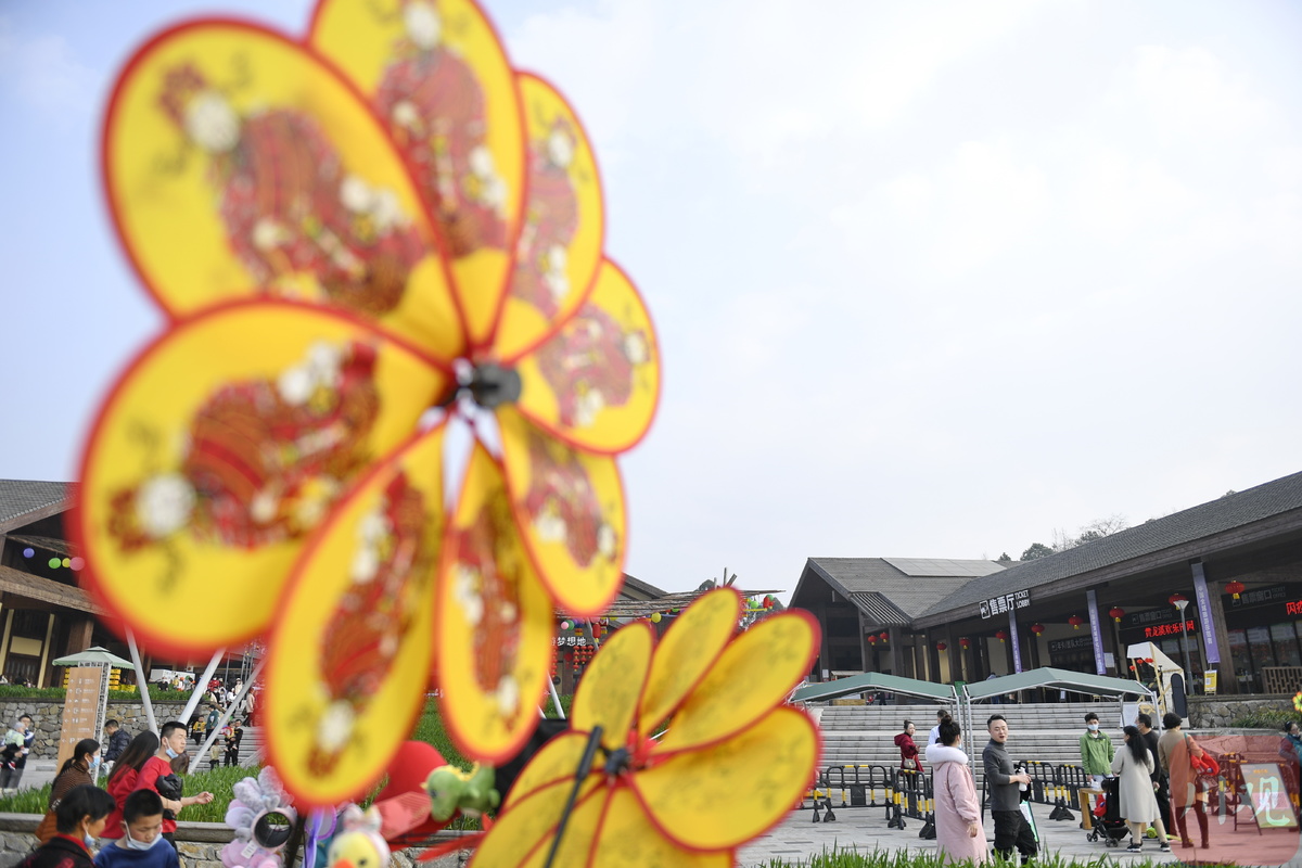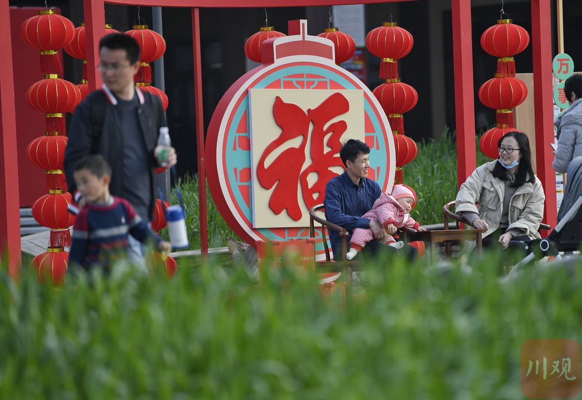 2月12日,在成都市双流区黄龙溪古镇附近的欢乐田园,游客络绎不绝。在“就地过年”政策的倡导之下,近郊游就成了大多数人的首选。不少游客选择带上父母、孩子,邀上三五好友,观青山绿水,赏乡村美景。