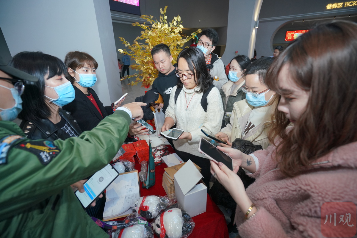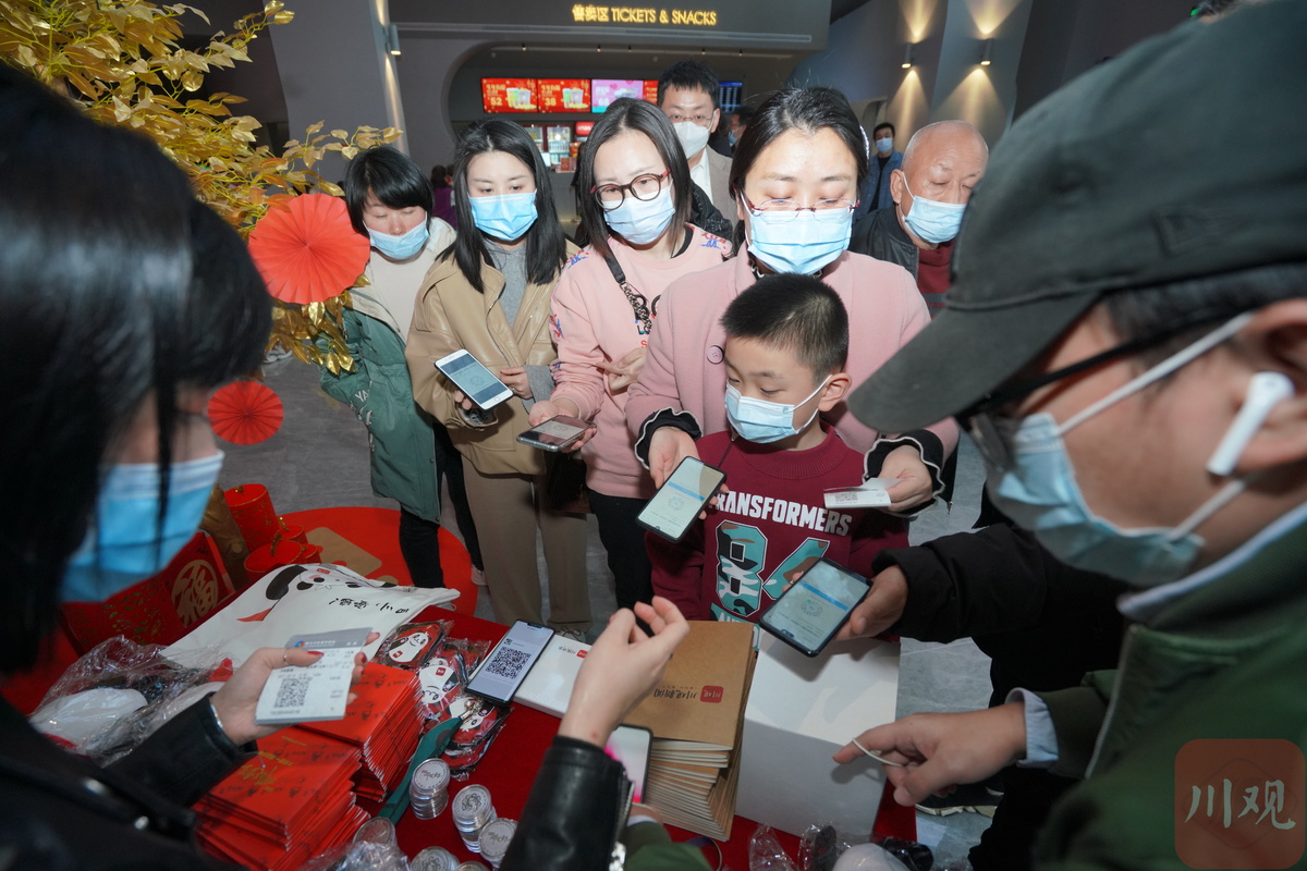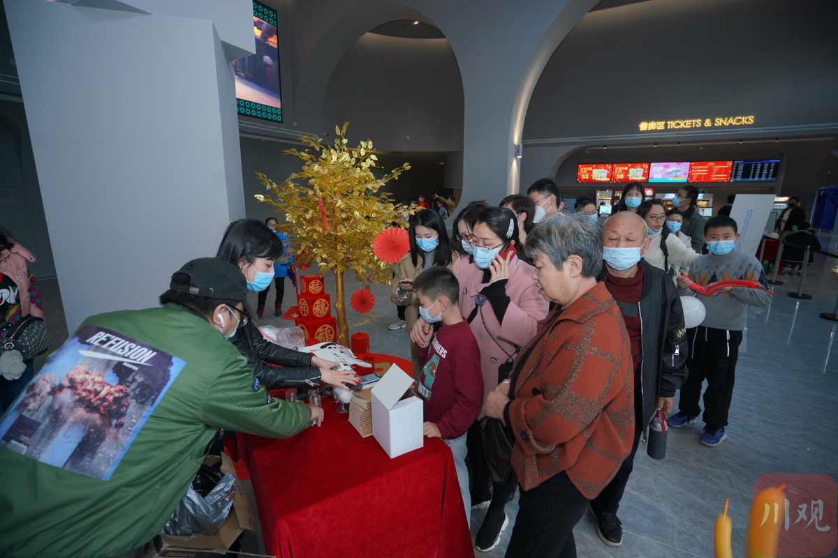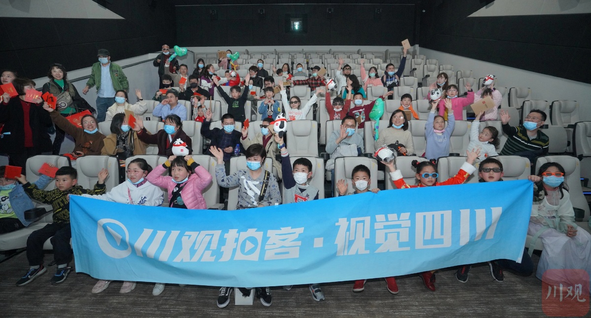 观影结束后,大家也都意犹未尽。川观拍客还为大家准备了精致的伴手礼,纪念币、笔记本、川观玩偶熊猫、新年明信片……大人和小孩都拿到了自己心仪的礼物。网友“妮妮儿”对记者说:“今年春节哪都不去,每天要给孩子安排节目,正好川观给了我们免费看电影的名额,这部影片大人小孩都喜欢看。感谢川观拍客给了这次机会,让我们在大年初一和这么多网友一起轻松快乐了一把。”