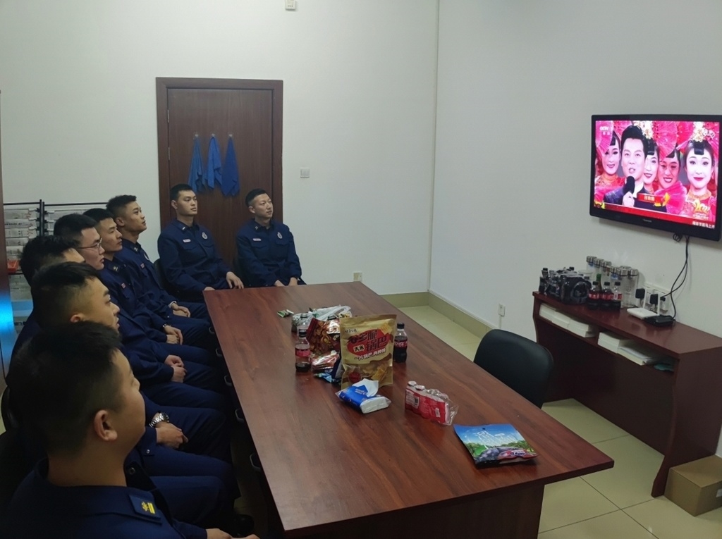 除夕之夜,万家灯火时,为了让每一名指战员能完整的看完春节联欢晚会,给家人打上一个温馨的电话,应急通信与车辆勤务大队干部替消防员站岗执勤。晚上8点,应急通信与车辆勤务大队的班级里桌上摆满了瓜子、花生、糖等食物,这是勤务一班在组织看春晚。大队为落实上级疫情指示,以班级为单位组织看春晚,促进队员们的感情以及落实规章制度。春晚成了每年必不可少的环节,消防员们吃着东西,看着春晚,时不时还和旁边的队友悄悄的聊着,春节的味道更浓厚了。