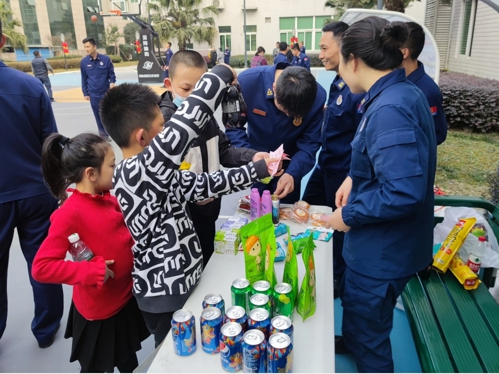 2月11日下午,应急通信与车辆勤务大队的篮球场上欢声连连,套圈、打保龄球、投篮比赛、吹乒乓球,猜字谜等小游戏有序开展着。参加此次活动的还有家在驻地的消防员的家属,游戏还会设置两个配合的游戏,为此来增强默契度和家人之间的感情。