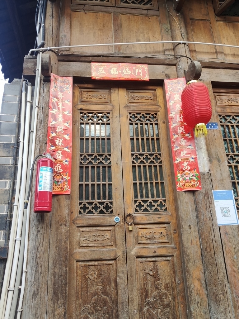 顺着这条老街一路向下,家家户户基本都贴上了春联,“迎春接福”“福气高照”“财源滚滚”等主题内容,寄托着老街人对新一年的期盼,也折射着老街人热闹红火的日子。
