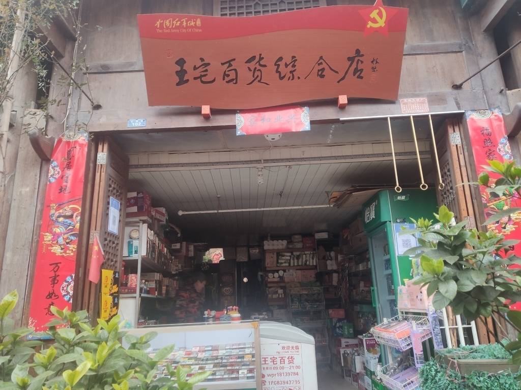 王保官介绍,对联里“喜居宝地”“福照家门”可谓是自己生活的写照。他的小店位于中国红军城,由文昌街、王庙街、龙潭街三条主要街道和木市巷、何家巷两条小巷构成。这里,清一色的青瓦木板房,延续了川北清代、民国时期典型的木架穿斗建筑风格。街头东大门墙上“打过嘉陵江,迎接党中央”的巨幅标语,为古街打上深深的红色印记。