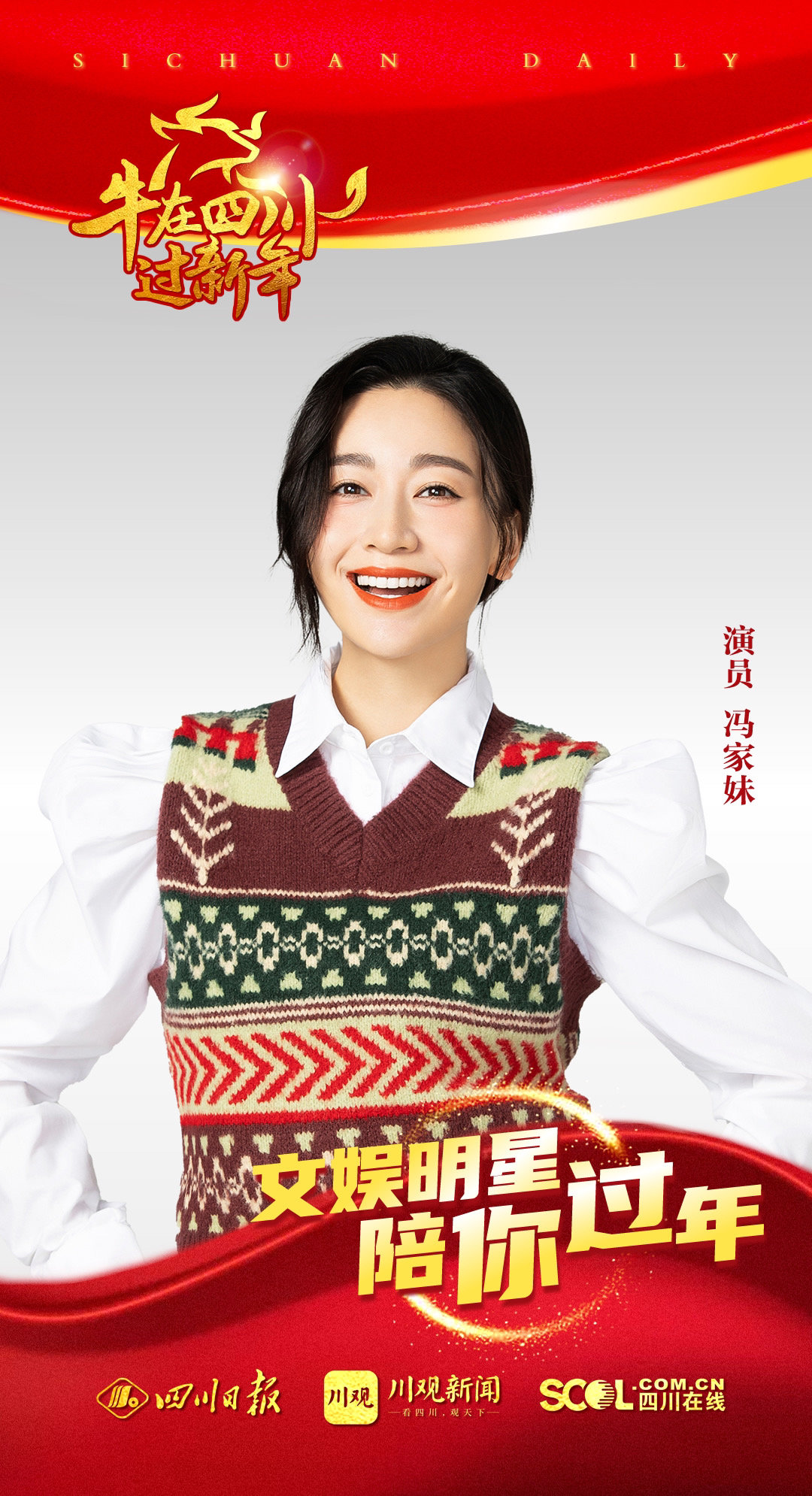 “留在四川过新年,我们陪你过大年。我是冯家妹,祝四川在线的读者们牛年大吉,万事顺意!”
