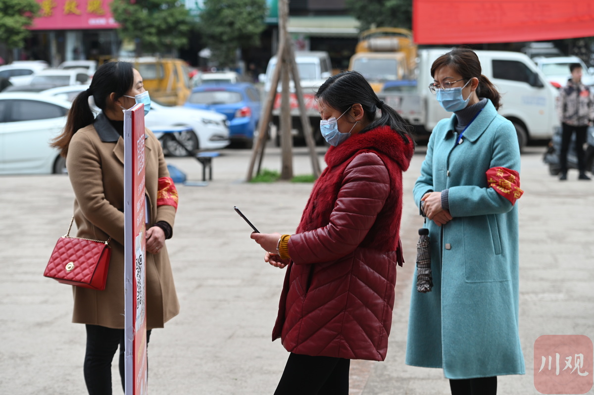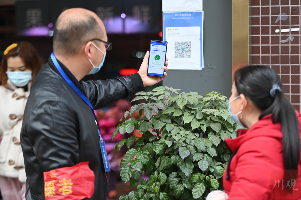 市场监督管理局工作人员引导群众打开“四川天府健康通”扫描场所健康码