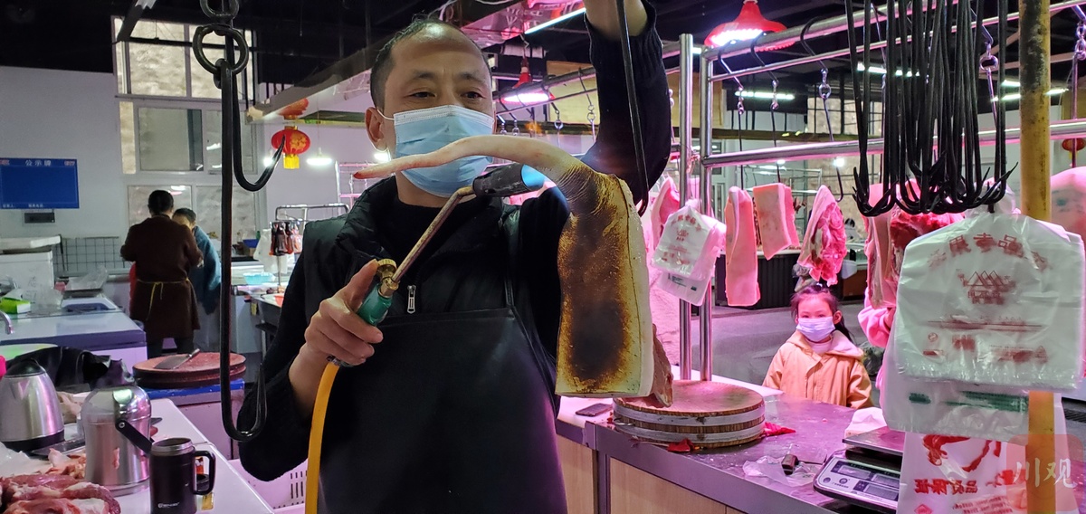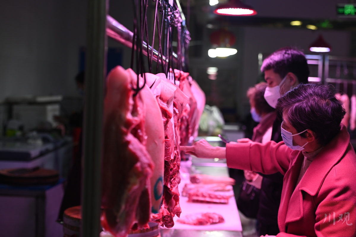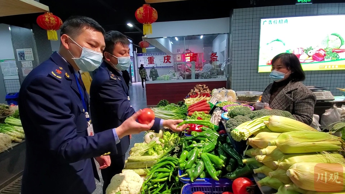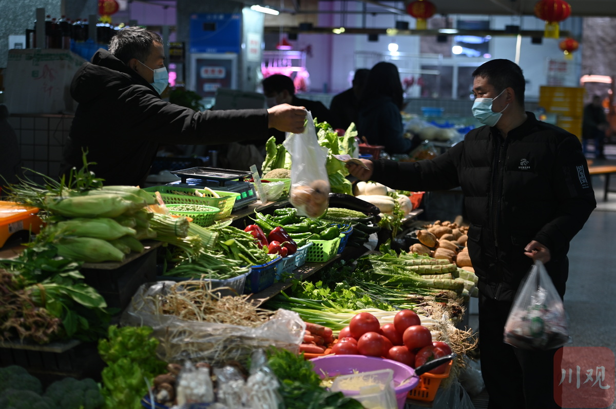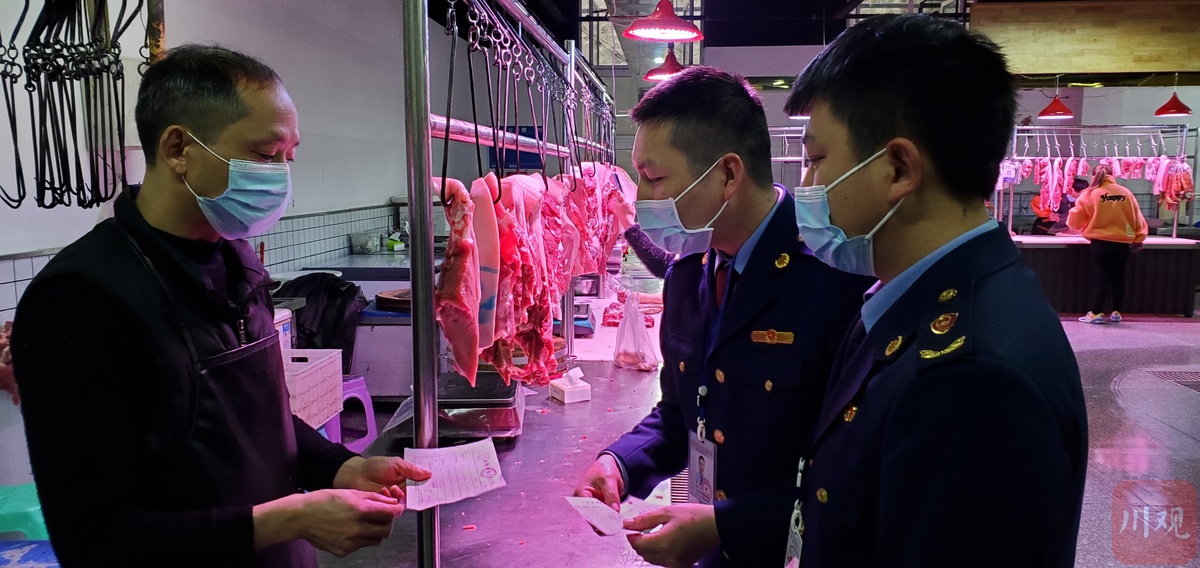 四川在线记者在市场内看到,肉类、蔬菜、水果等农副产品一应俱全,熟食、干果、点心等种类丰富,前来购物的群众络绎不绝。“今年春节,大家响应政府号召就地过年,我们为确保全县人民度过一个平安祥和的春节,一点都不敢松懈。”来到一个肉类摊点,陈滔仔细查验起动物检疫合格证和肉品品质检验合格证。“就以我们所在这个市场为例,我们每天引导前来购物的群众做好体温监测和扫描场所健康码,同时针对市场内的经营户,每日实行检查,包括场所消毒记录、人员体温、所售商品来源和检验报告等。”