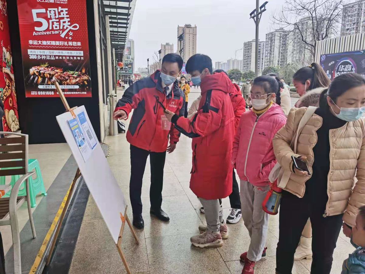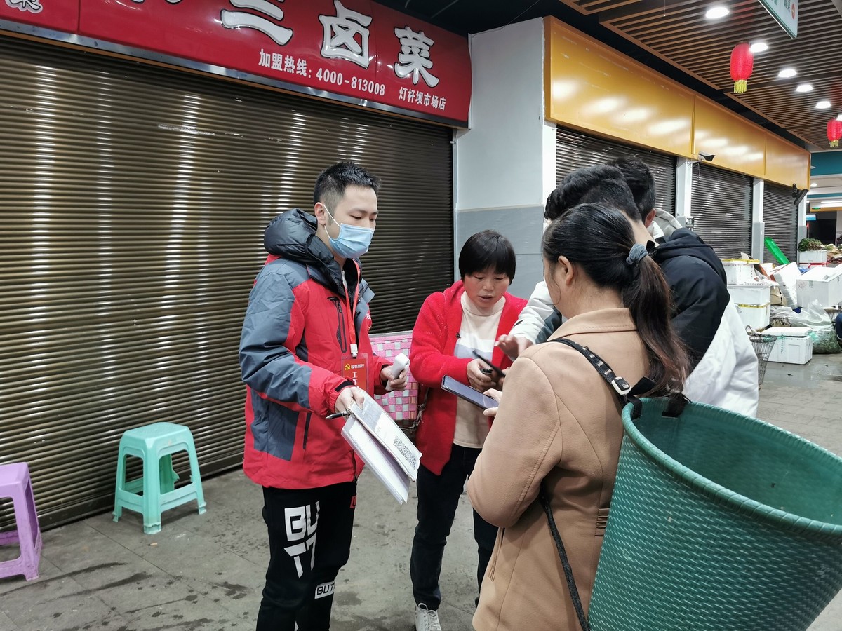 2月16日,农历正月初五。早上八时起,在自贡市城区灯杆坝菜市场内,龚毅、黄宇、张艺露等12名自贡青年党员突击队国企支队第五中队队员,胸佩党徽,身着红色志愿者服装,耐心地督察每一位前来购物的市民佩戴口罩、检测体温,指导帮助其下载、注册和扫码、亮码验证四川天府健康通等。