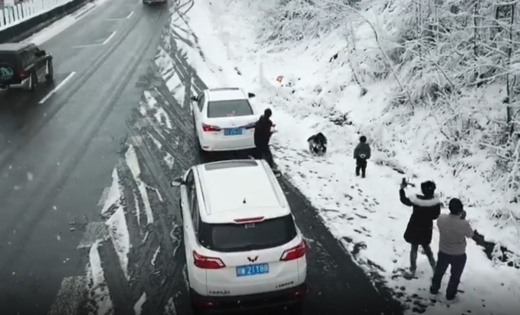 记者17日从省高速交警六分局获悉,2月17日10时,雅西高速 拖乌山路段突降大雪,雪景很美,但是一小部分驾驶员停车靠边玩雪,太危险了!