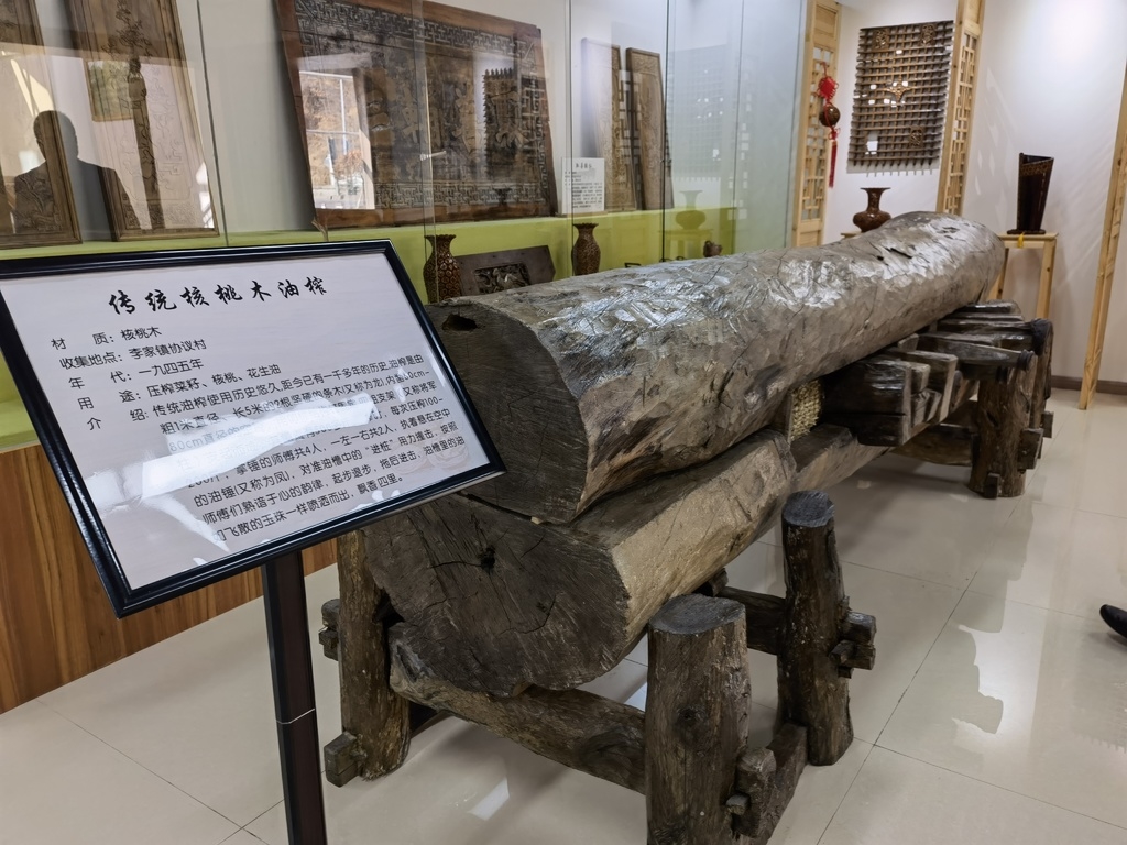 记者探访看到,六个展厅分别展示了世界核桃、中国核桃、朝天核桃品种和产业发展情况以及朝天核桃悠久的历史和特色文化,以及朝天核桃之最;收集了核桃木制家具工艺品;珍藏了核桃木榨油机等生产生活用品和康熙年间的珍贵匾额“取善辅仁”等民俗用品;陈列了省书画名家创作的《朝天核桃赋》、《金秋核桃缀满枝 嘉陵江上运输忙》等美术作品、朝天核桃艺术品,以及国家级非物质文化遗产《将军剿匪 百姓捧果酬英雄》等麻柳刺绣作品。