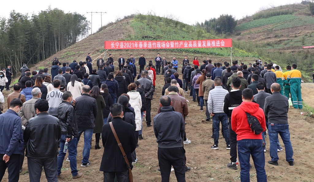 2月18日,牛年的第一个工作日,宜宾市长宁全县机关企事业单位的百余名干部职工,就一起来到当地硐底镇治平村,参加长宁春季造竹现场会暨竹产业高质量发展推进会,并进行了热火朝天的造竹植绿活动。