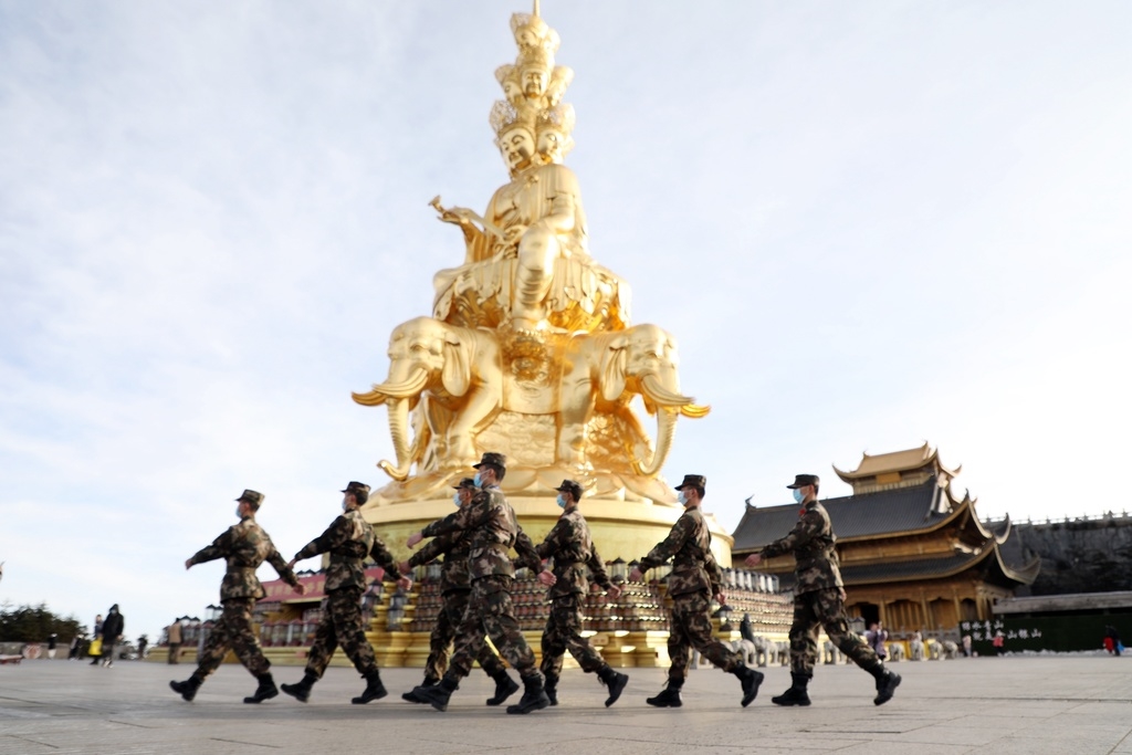 家人闲坐,灯火可亲。春节过年一家人团团圆圆吃顿年夜饭是一整年的期盼,但对于驻守在四川峨眉山脚下的武警四川省总队乐山支队官兵们来说,他们的“年”则是坚守在一线战位上。2月18日记者从武警四川省总队获悉,春节长假期间,该支队官兵坚守岗位,每日派出40余名官兵,在做好自身疫情防护的同时,积极配合景区管委会维护景区秩序,服务各地游客6万人次,帮扶受困游客20余次,受到了游客的赞誉和好评。