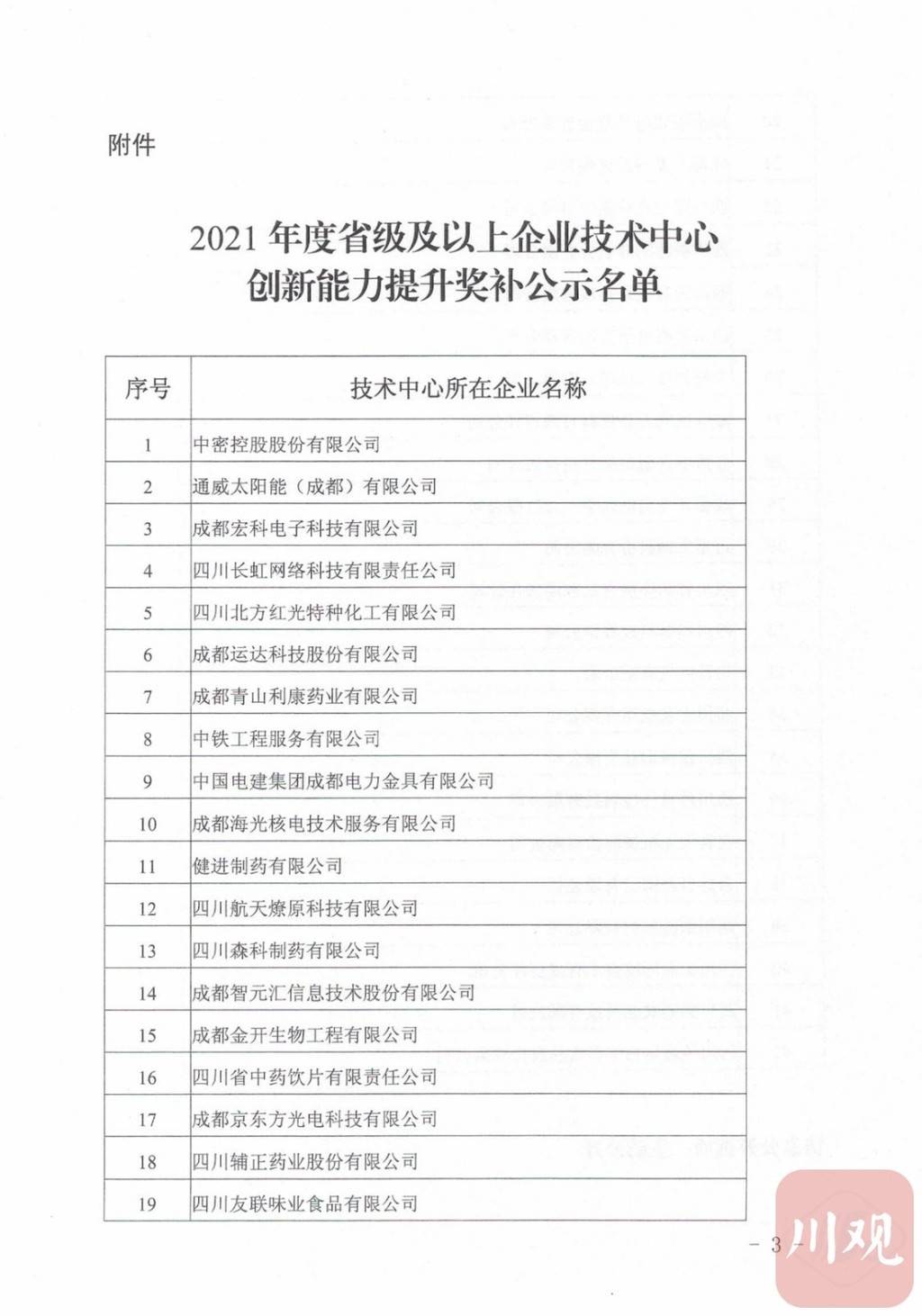 根据四川省财政厅、四川省经济和信息化厅《关于加大企业创新主体培育力度的通知》(川财建〔2019〕165号)和四川省经济和信息化厅《关于2021年度落实加大企业创新主体培育力度有关政策的通知》(川经信技创函〔2020〕638号),经济和信息化厅组织开展了2021年度省级及以上企业技术中心创新能力提升奖补资金申报工作。