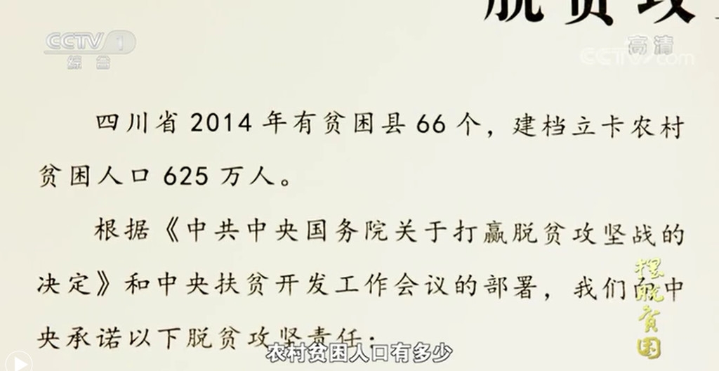 2月18日21时,脱贫攻坚政论专题片《摆脱贫困》在央视播出。在第一集《庄严承诺》中,首次揭露了一个关于四川脱贫攻坚的细节——2015年,四川向中央签订的脱贫攻坚责任书。