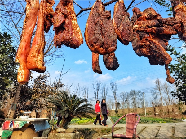 薛先生给他的作品取名《年味》,“离开城区在彭州郊区乡村农家院看见农民在晒自己腌制的腊肉香肠,使我嗅到儿时在家乡过年的味道。”