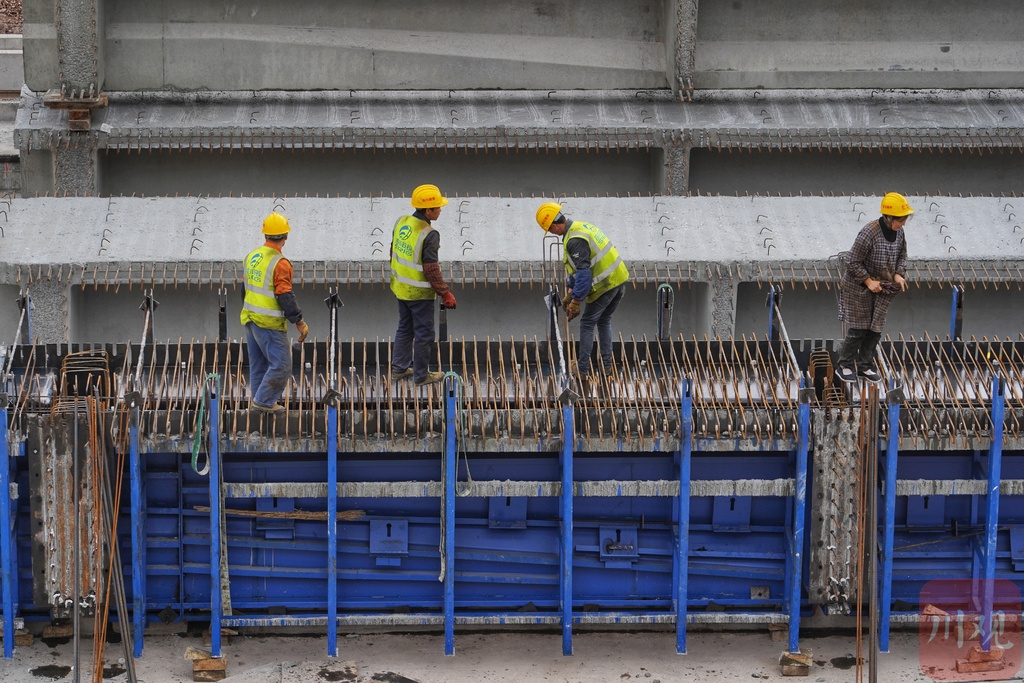 不仅建设不停工,控制性工程还在加大投入。位于王通段尾端的二郎庙特大桥长1500多米,部分桥墩位于深沟峡谷,最高处有102米,桥墩按节段来施工,每一节段只有6米。4标项目总工伍龙告诉四川在线记者,目前全桥16个桥墩同时施工,还将增加90%的工人和设备,以多投入来保建设进度。