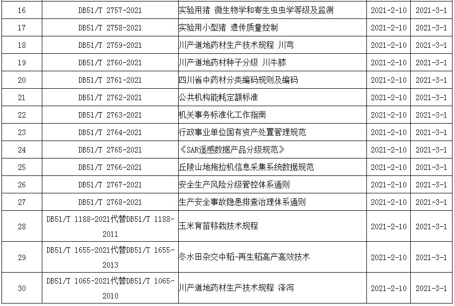 四川批准发布30项地方标准 涉及中药材、公共机构能耗等