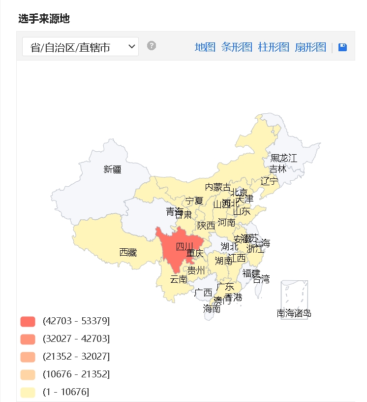 据统计,在报名选手来源地中,不仅有成都本地的主播,更有来自海外和广东、西藏、内蒙古等各地的主播。数据统计显示,除四川外,报名选手热门来源地排名前10的分别是浙江、重庆、贵州、山西、宁夏、云南、江西、河北、西藏、甘肃。